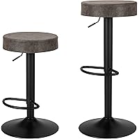 NIOGLOW Metal and Leather Adjustable Counter Height Swivel Barstools, Se...