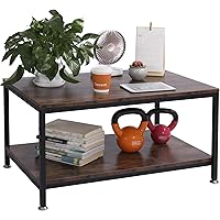 ALAPUR Industrial Coffee Table, 2 Tier Wood Rustic Coffee Table with Sto...