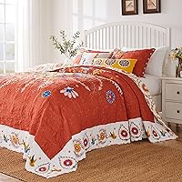 vctops Bohemian Botanic Leaf Print Quilt Set with Shams Queen Size 100% ...