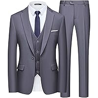 MY'S Men's 3 Piece Suit Set with Tie, One Button Slim Fit Solid Jacket V...