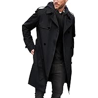 Pretifeel Mens Trench Coat Slim Fit Double Breasted Long Jacket Notched ...