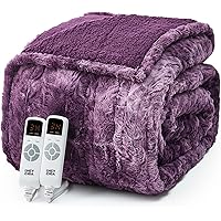 EHEYCIGA Electric Heated Blanket Queen Size Faux Fur, 10 Hours Auto Shut...