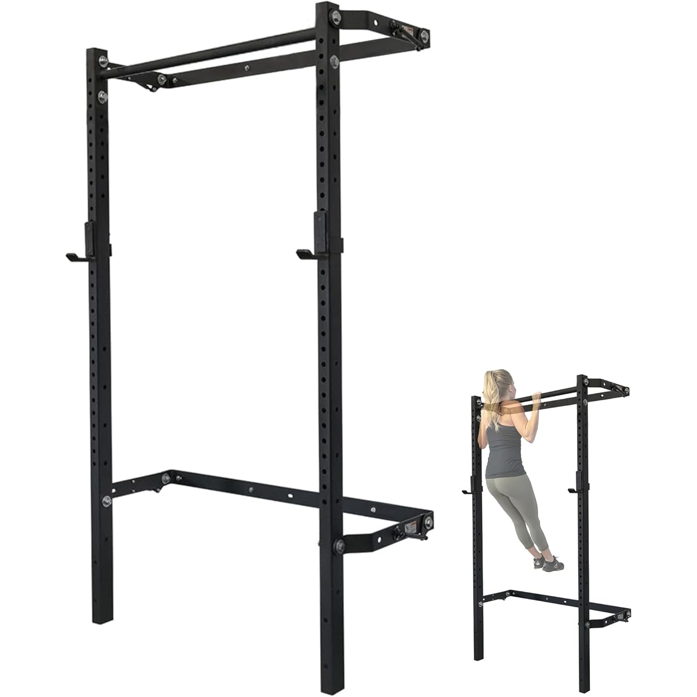 - Foldable Squat Rack with Space-Saving Pull-Up Bar - Wall-Mounted Gym Equipment, Includes J-Cups for Barbell, Ideal for Strength Training, Bench Press and Leg Squats