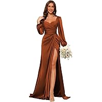 Dessiny Lantern Sleeves Satin Bridesmaid Dresses for Women with Slit V N...