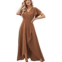 Ever-Pretty Women's V Neck Long Sleeves Floor Length Ruched Chiffon Form...
